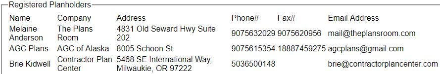 | Plan Holders List | |||